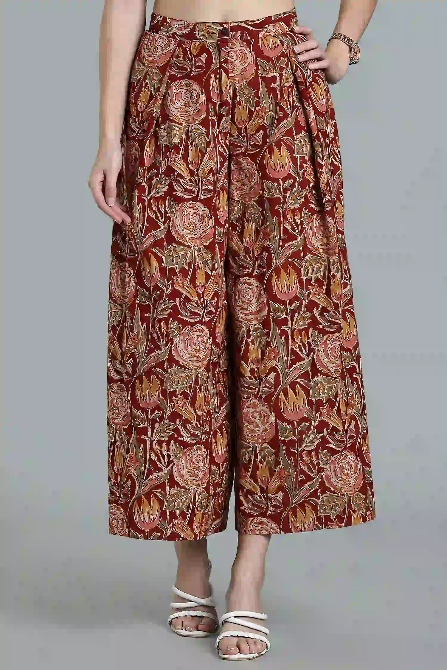 KALAMKARI COTTON PANT PARALLEL FLARED