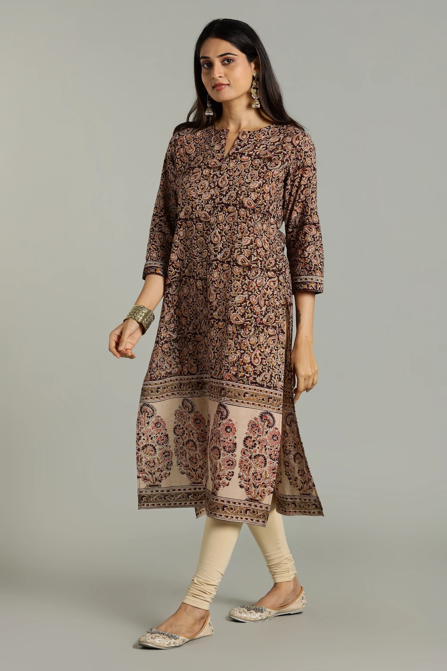 KALAMKARI KURTA STRAIGHT BIG BORDER RED