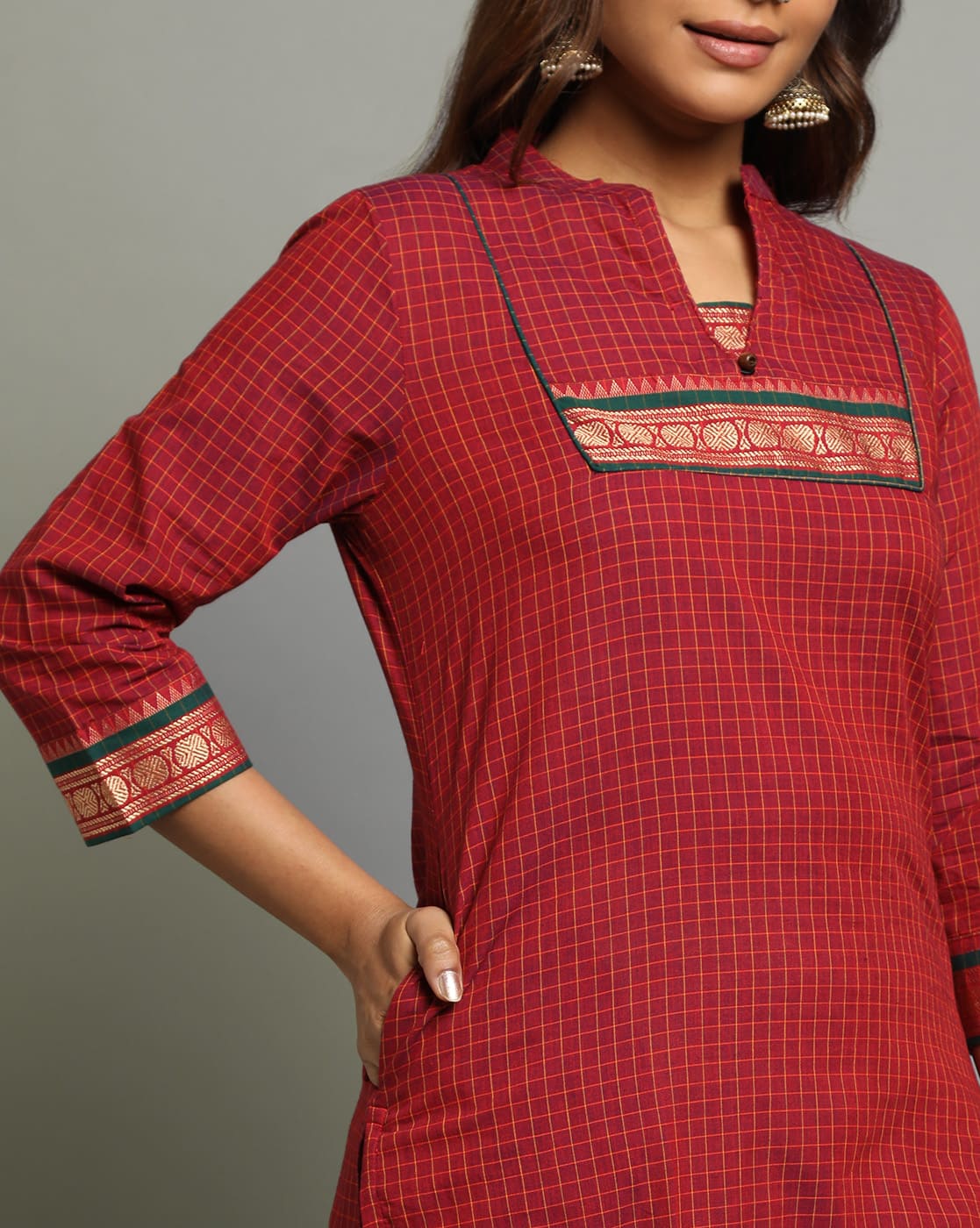 KURTA SOUTH C YOKE BORDER – GREEN